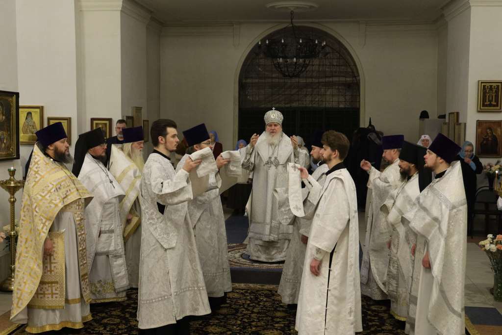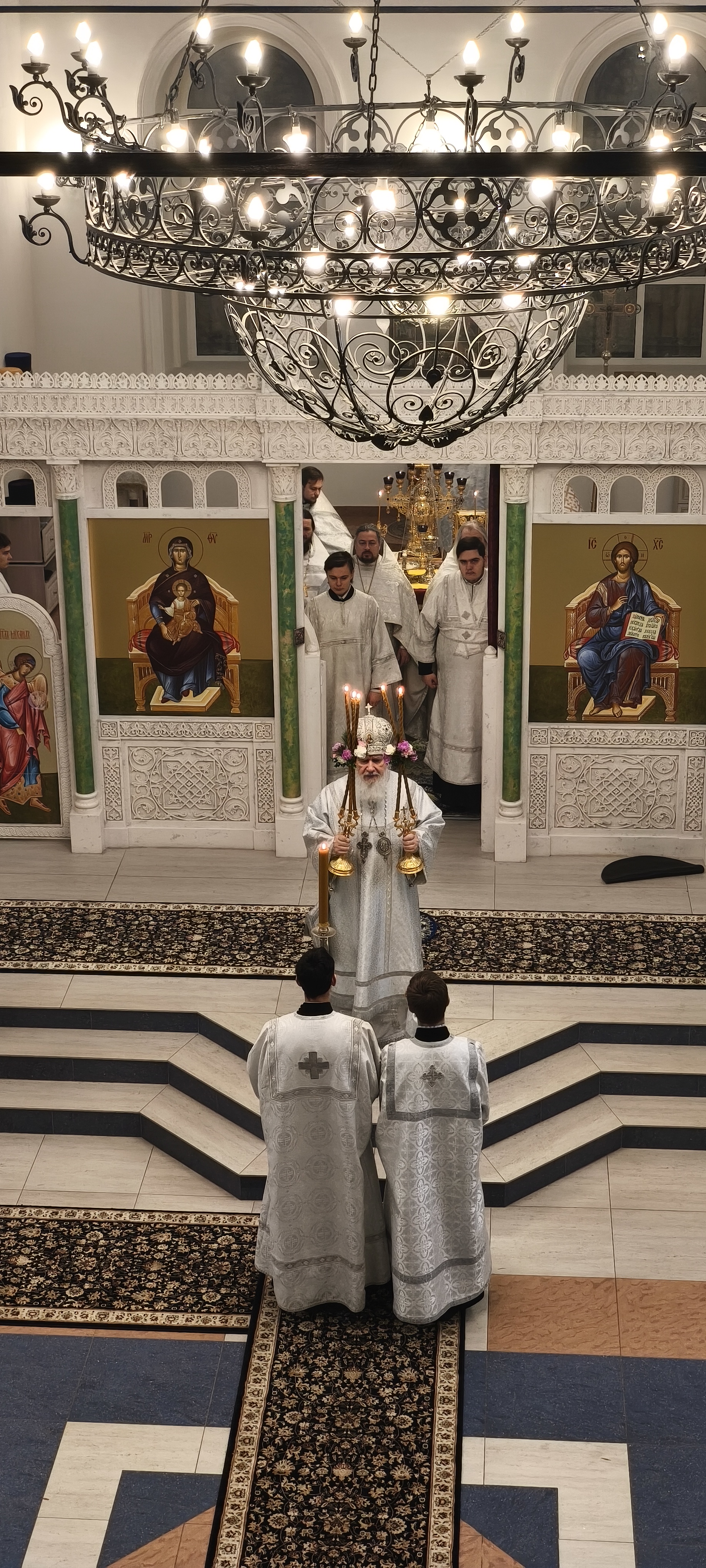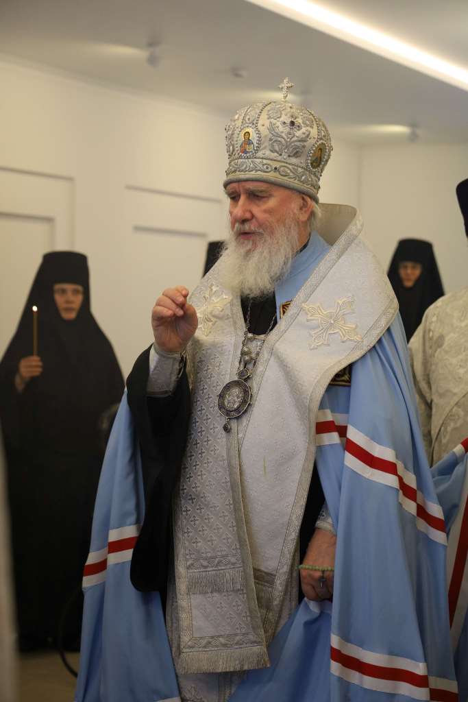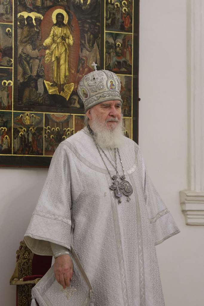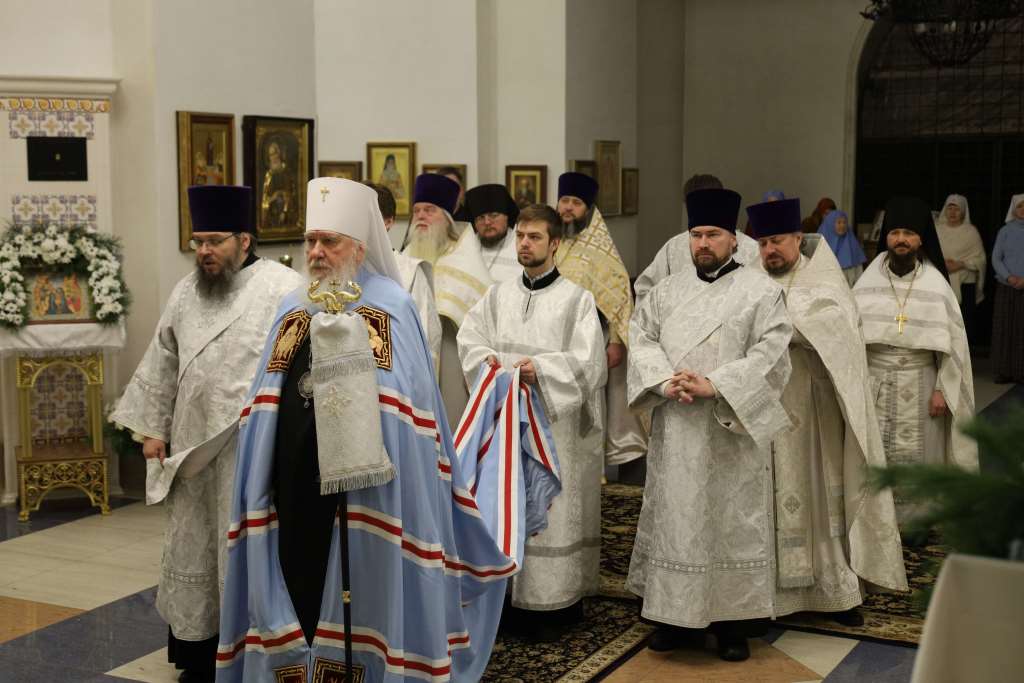 Высокопреосвященнейшему владыке сослужилииерей Дионисий Лобанов, иерей Роман Савчук; иерей Евгений Доманов; протодиакон Алексей Хамтеев; протодиакон Сергий Комаров.