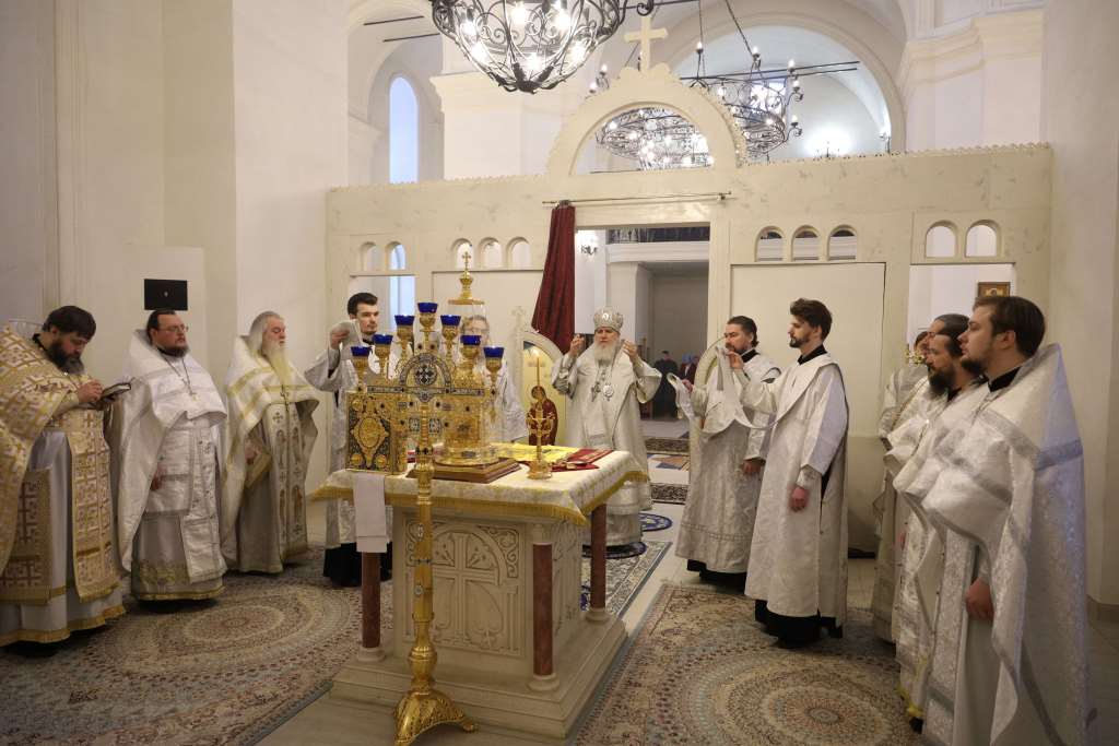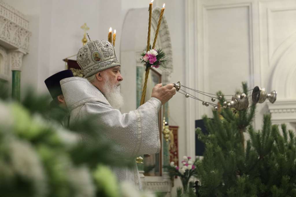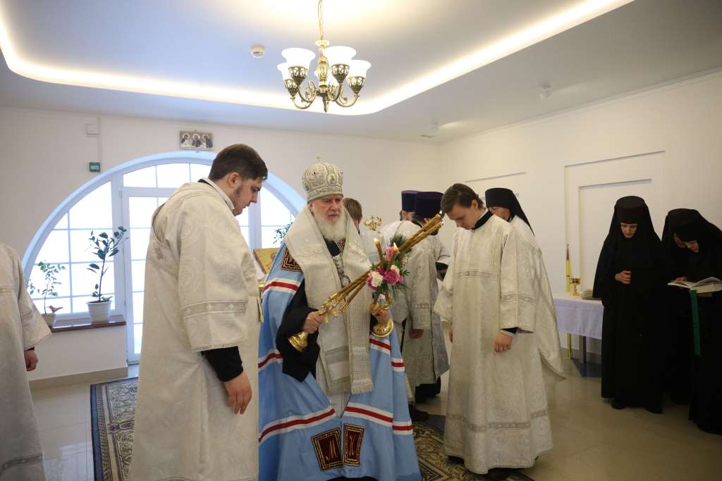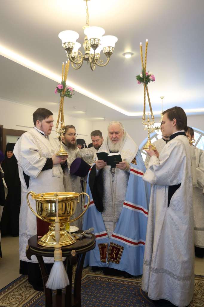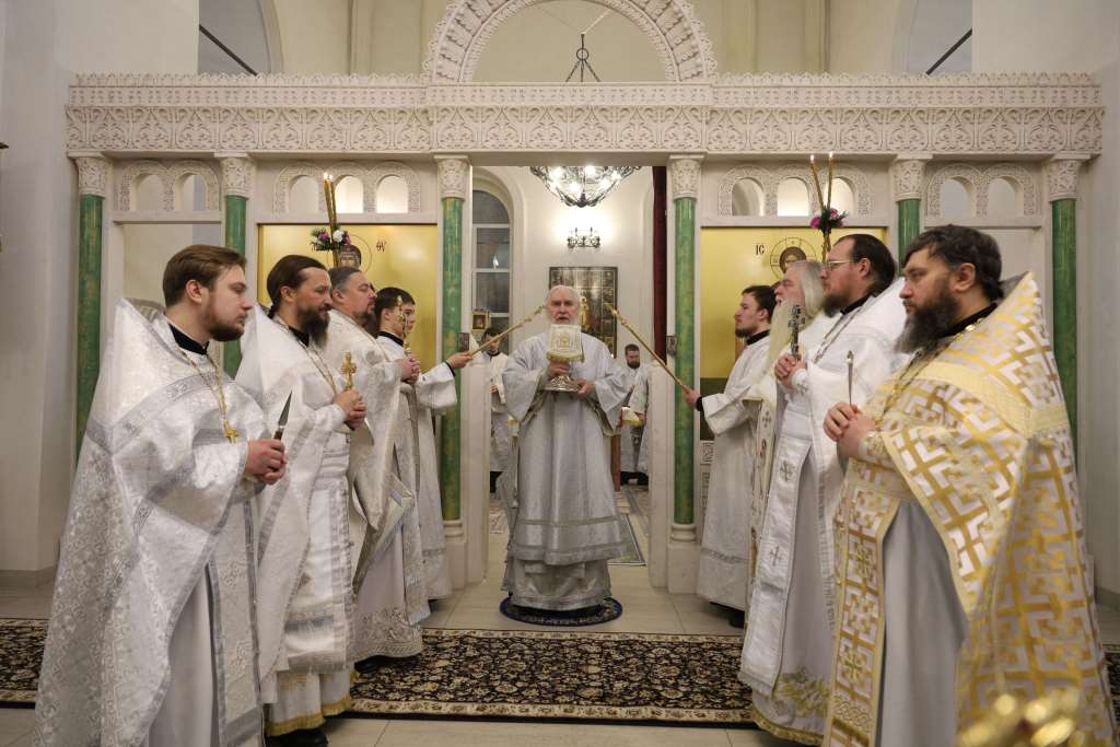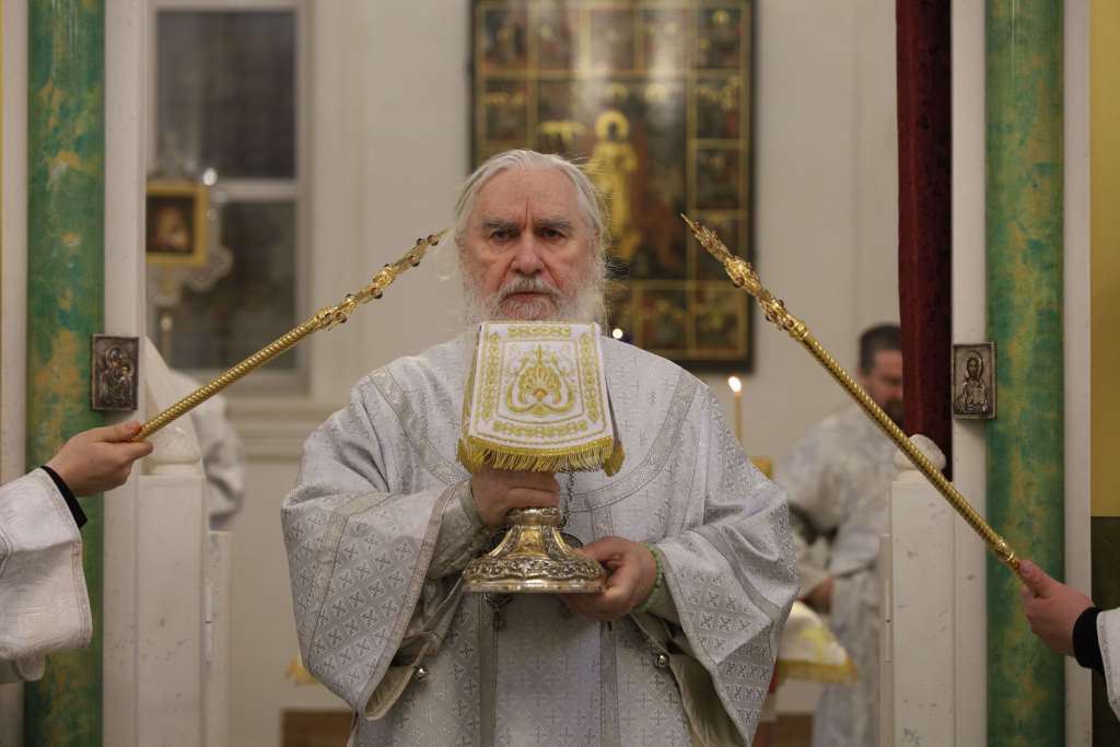Высокопреосвященнейшему владыке сослужилииерей Дионисий Лобанов, иерей Роман Савчук; иерей Евгений Доманов; протодиакон Алексей Хамтеев; протодиакон Сергий Комаров.