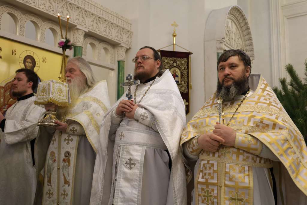 После сугубой ектении была прочитана молитва о Святой Руси, возносимая во всех храмах Русской Православной Церкви по благословению Святейшего Патриарха Московского и всея Руси Кирилла.