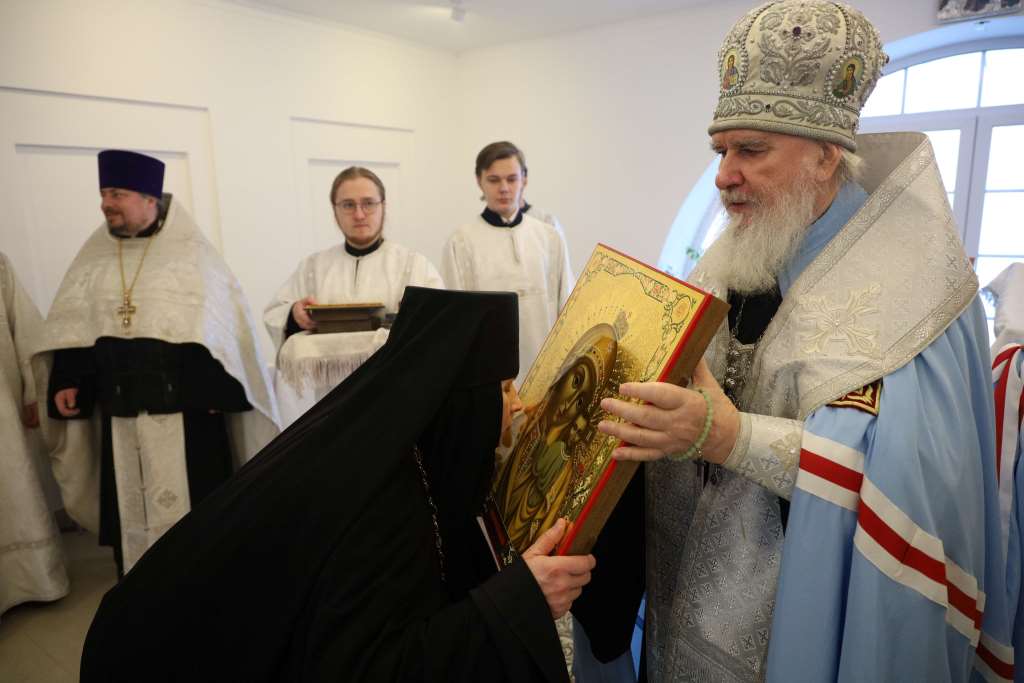 Владыка также вспомнил о значительных трудах матушки Анастасии по восстановлению монастыря. Она приложила огромные усилия к возрождению храмов и самой обители. В завершение митрополит Климент вновь выразил благодарность матушке за ее самоотверженные труды, вручив ей благодарственное письмо и икону святителя Тихона, патриарха Московского и всея Руси.