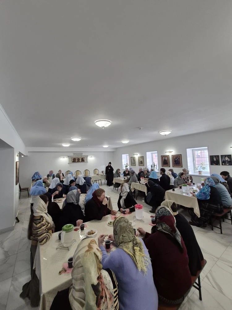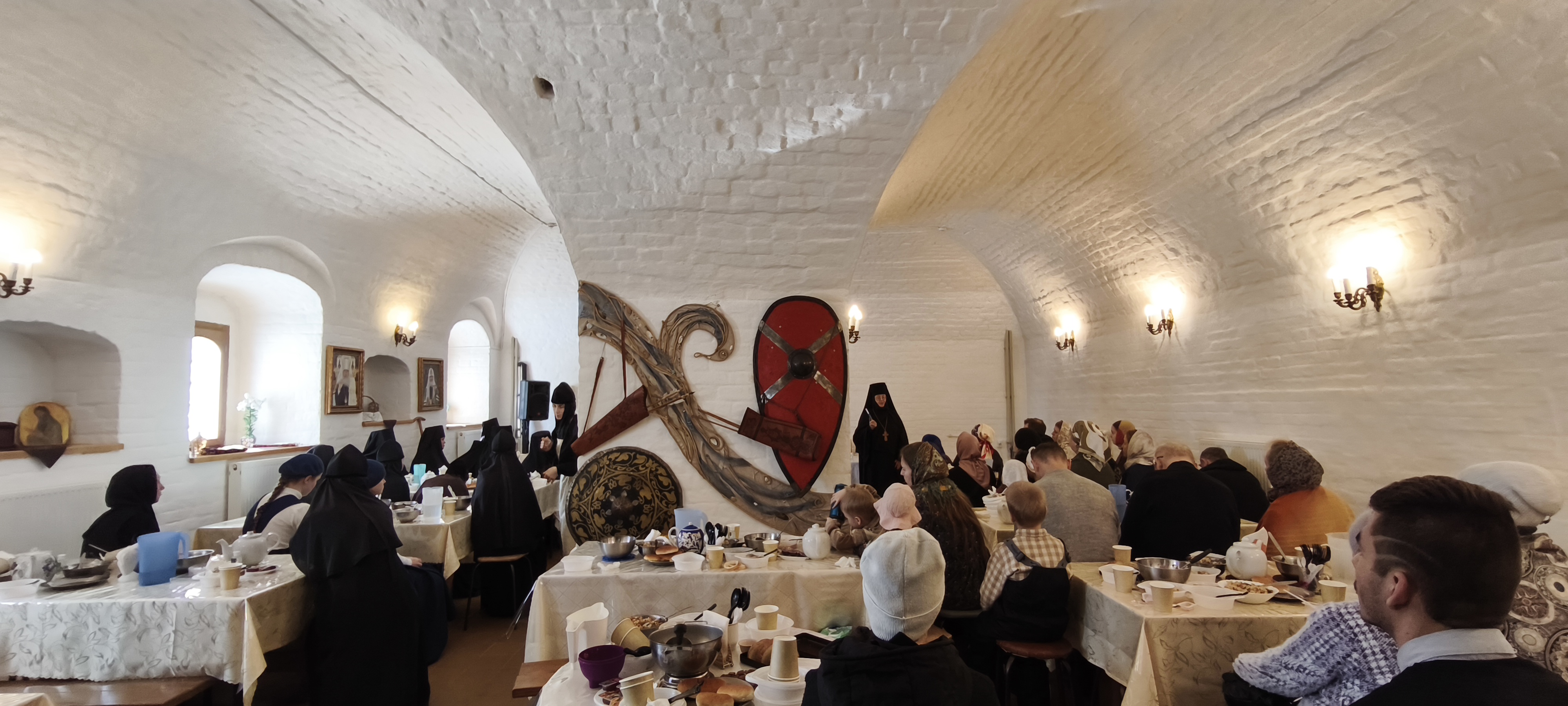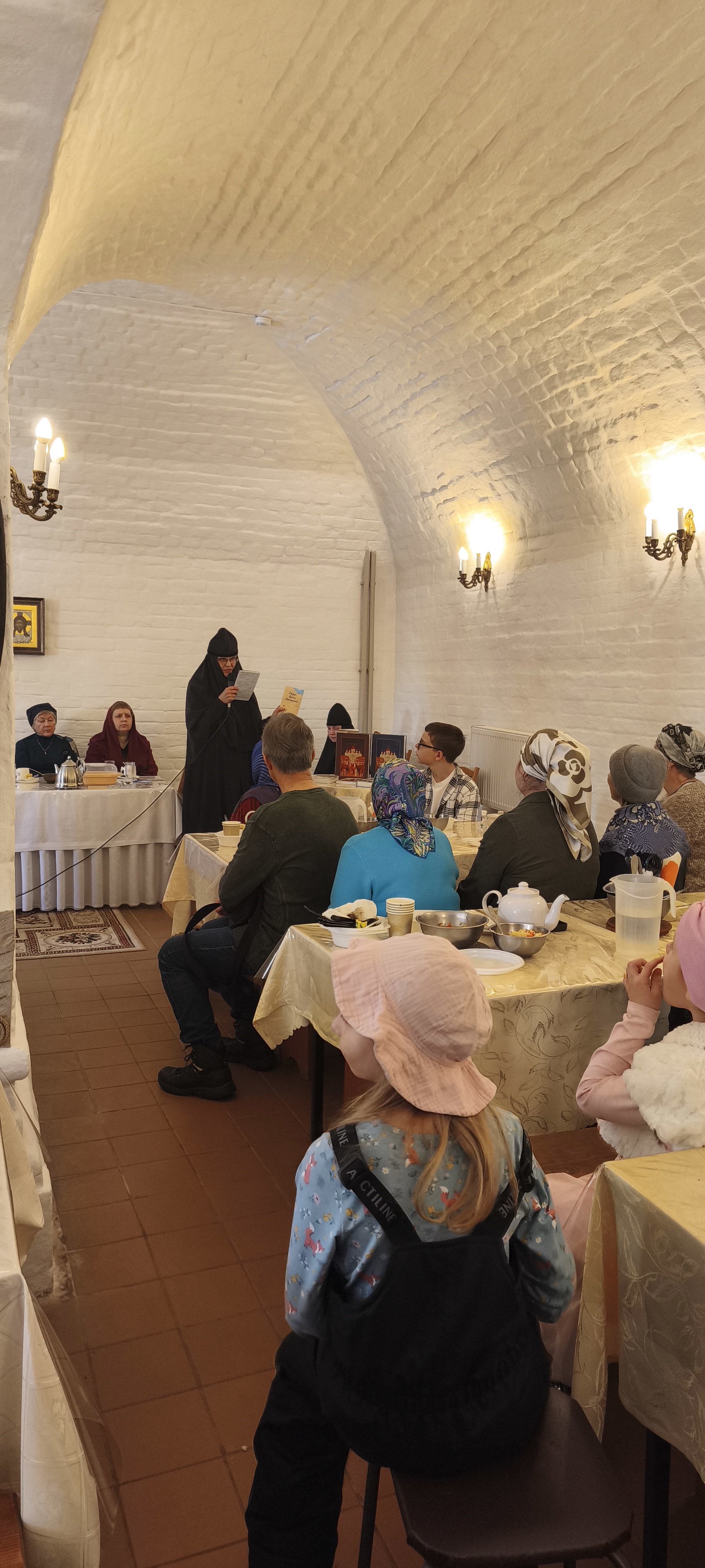Началась она с Божественной Литургии в Сретенском монастыре. По окончании Литургии, за которой паломники причастились, их пригласили в монастырскую трапезную «Несвятые Святые», где ждал, с большой любовью накрытый обед.