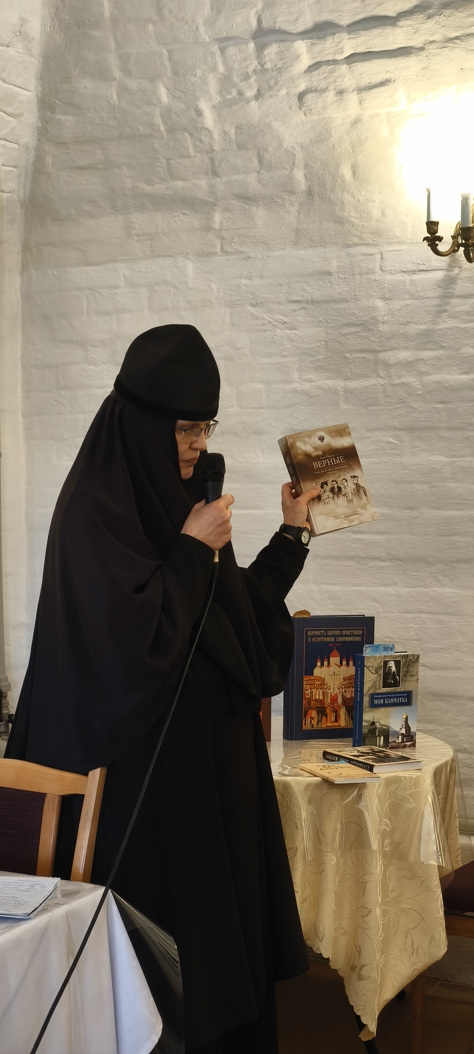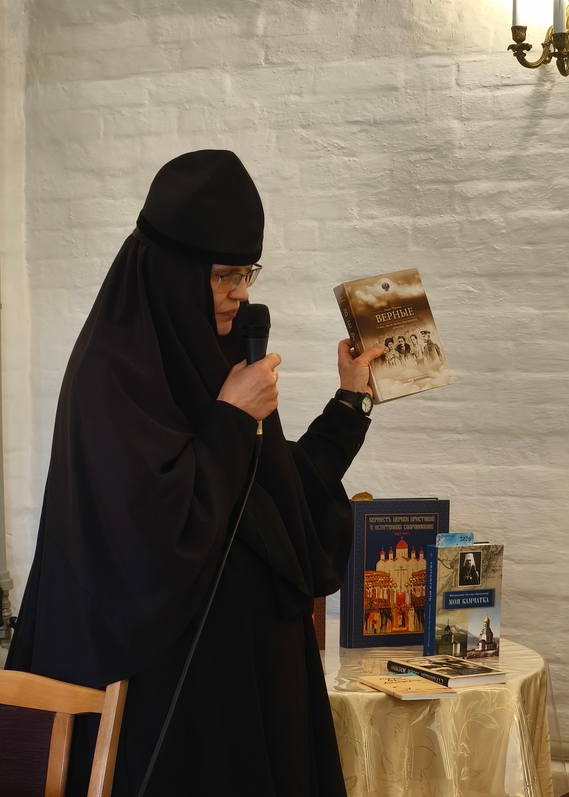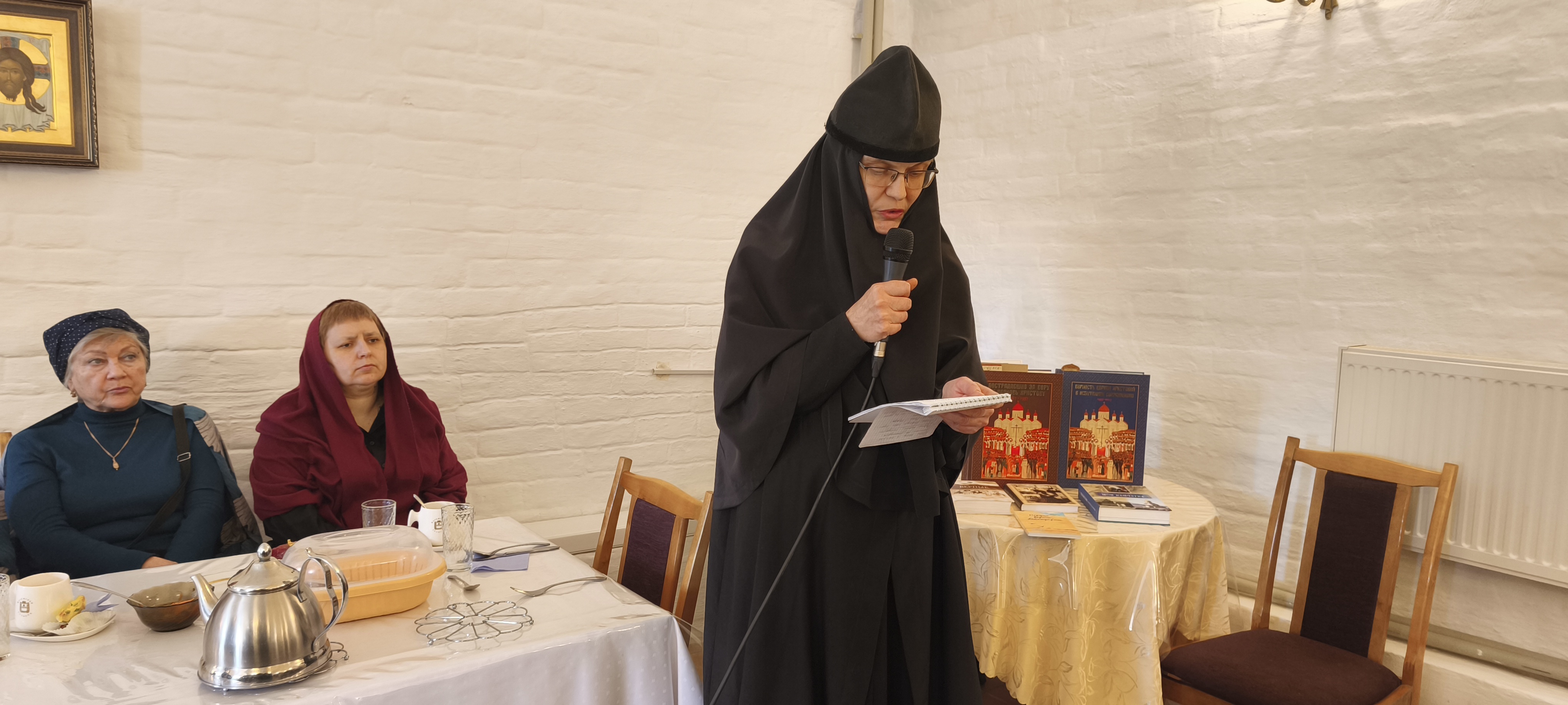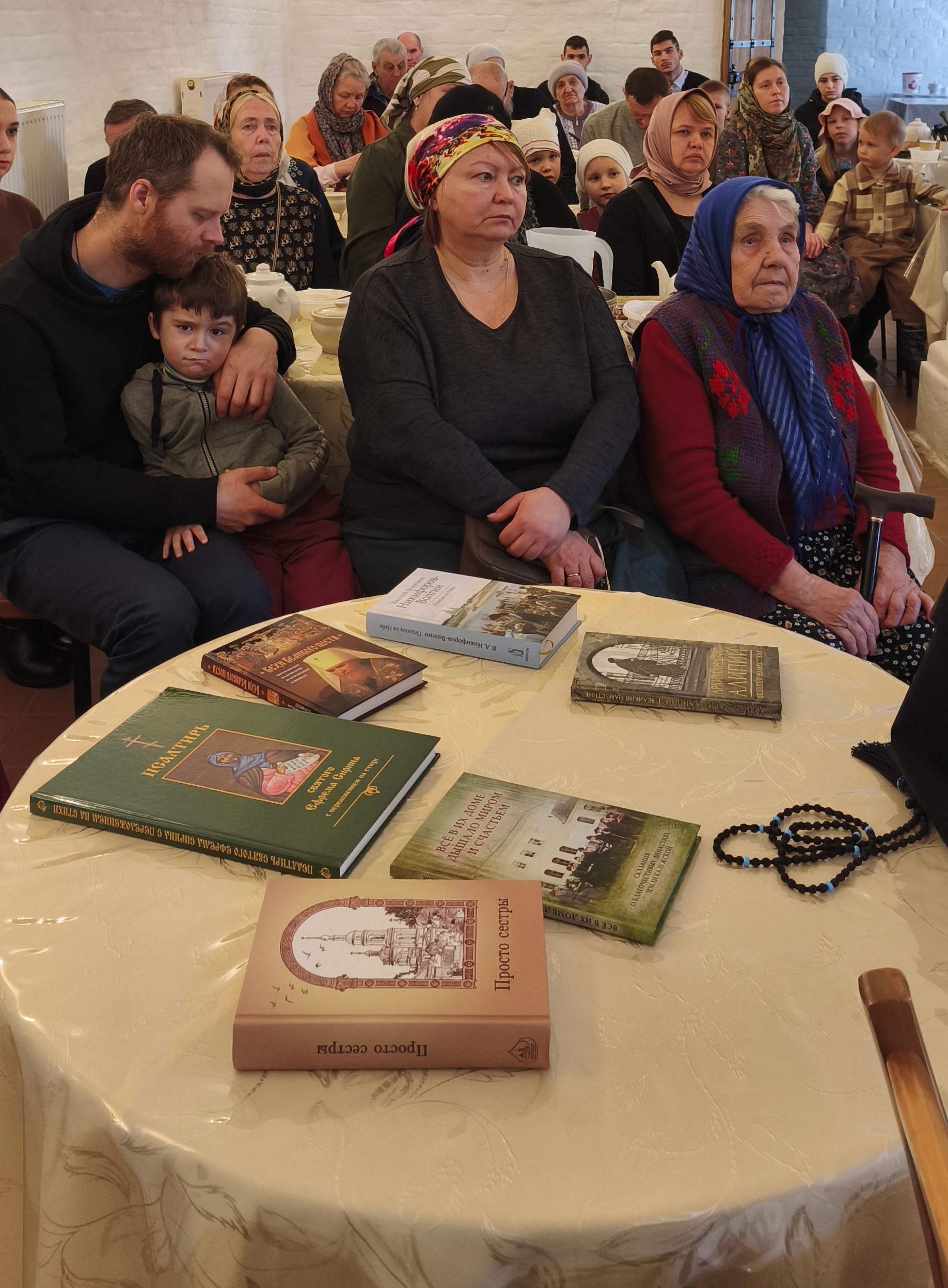 О книгах рассказывала монахиня Сергия, уделяя внимание персоналиям: Царственным Страстотерпцам, св. прмц. Елисавете, и другим прославленным и непрославленным страдальцам. Всеми этими книгами предложено было пользоваться всем заинтересованным прихожанам.