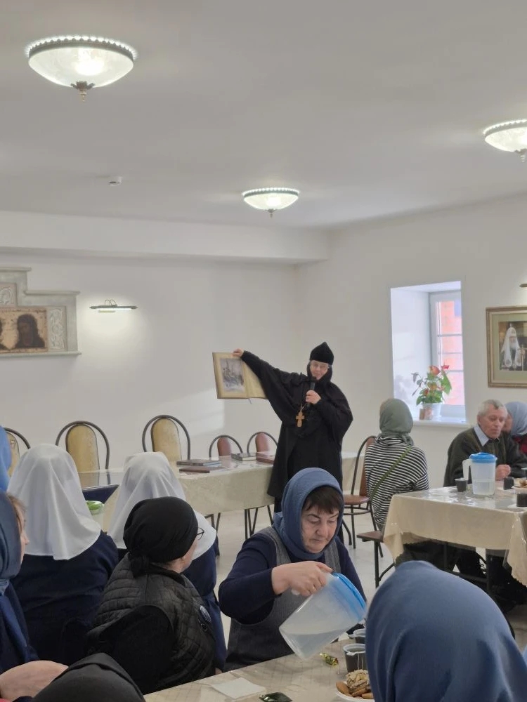 Также матушка напомнила о книге митрополита Климента «Вехи Великого поста», где глубоко раскрыто содержание и смысл великопостного периода. На беседе присутствовали сестры и прихожане в количестве 50 человек.